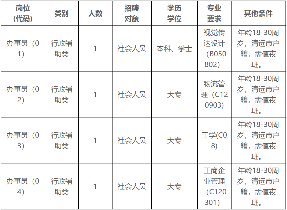 根據(jù)工作需要,清遠(yuǎn)市清城區(qū)源潭鎮(zhèn)人民政府面向社會(huì)公開(kāi)招聘專項(xiàng)工作聘員4名。現(xiàn)將有關(guān)事項(xiàng)公告如下: