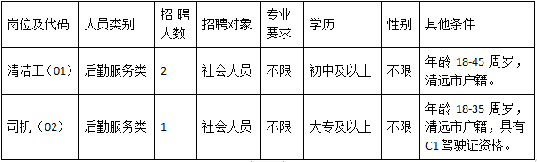 清遠市清城區(qū)機關事務管理局因工作需要,根據(jù)《關于印發(fā)<清遠市清城區(qū)機關事業(yè)單位專項工作聘員、合同制聘員以及后勤服務類人員管理辦法>的通知》(城區(qū)人社〔2022〕20號)文件精神,面向社會公開招聘后勤服務類人員3名,現(xiàn)將有關事宜公告如下:
