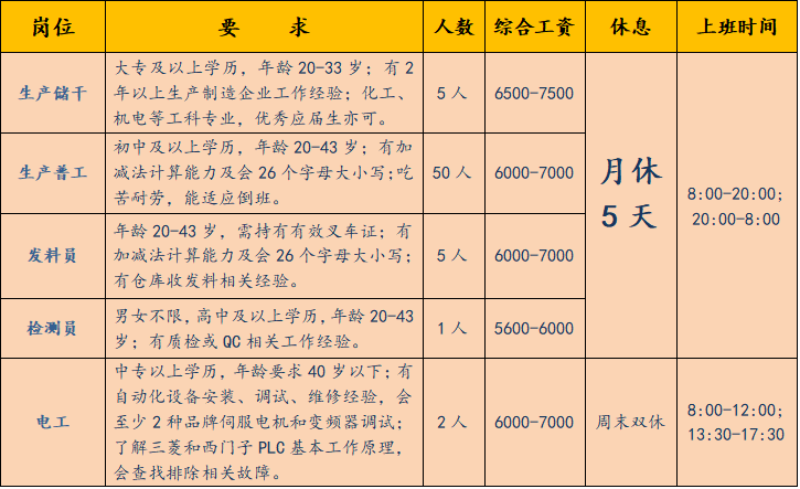 3、推薦生產(chǎn)工獎(jiǎng)勵(lì):在職員工推薦獎(jiǎng)勵(lì)1500元/人,社會(huì)人員推薦獎(jiǎng)勵(lì)1000元/人,不限人數(shù);
